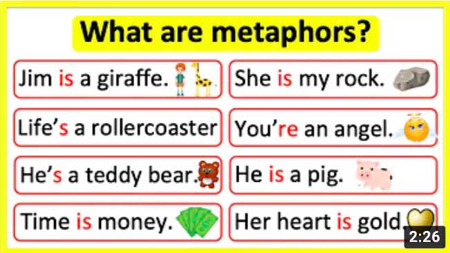We know that trees don’t have the human quality of dancing however, this language technique makes the sentence more interesting and creates an image in the reader’s mind. It sounds more interesting than just saying, “The tree is moving in the wind.”