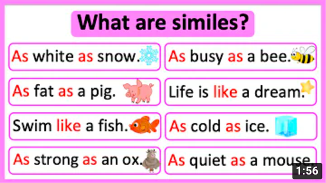 Remember that a simile is a figure of speech. This means that it shouldn’t be taken literally as the words in the sentence convey a different meaning.