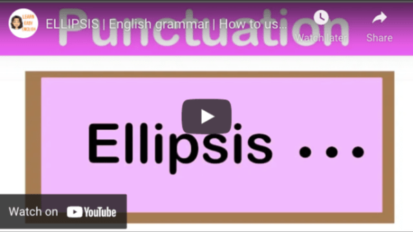 An ellipsis consists of 3 dots. It is used to show a pause, omitted words, or to add effect to a sentence.