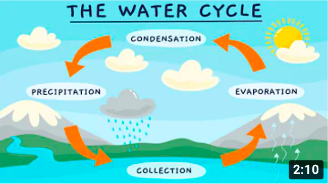 Then water falls as precipitation, this occurs when the droplets in the clouds become too big and too heavy for the air to hold them. It falls back down to Earth in different forms. Precipitation can take many forms including rain, hail, and snow.